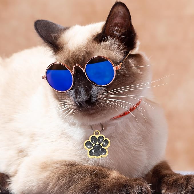 Abbylike 60 Pcs Personalized Dog Tags Blank Pet ID Tags Custom Glitter Paw Pet Tag Cute Metal Cat Name Tag Small DIY Engraved Puppy Name Tag for Dogs Pets(Gold)