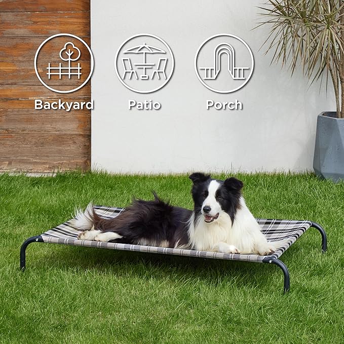 • Indoor & Outdoor Use: Weather resistant, the 8" raised breathable mesh cot works great indoors and outside. Keep your pup dry and comfortable in the backyard, on the patio or porch, next to the pool, or while camping.