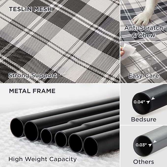 • Strong & Durable: Heavy-duty Teslin mesh holds up against scratching and chewing, providing excellent support and even pressure distribution to reduce joint and muscle pain. The strength-tested lightweight metal frame supports dogs up to 75 lbs.