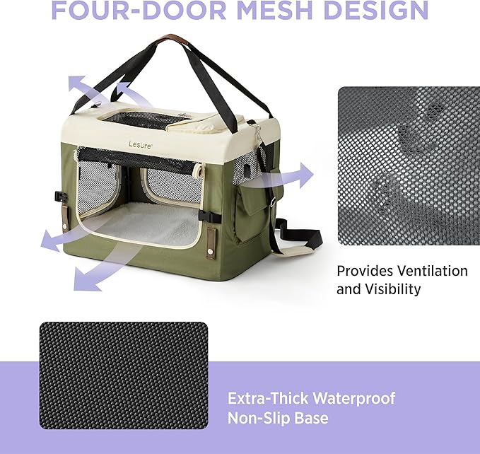 • Safety First, Adventures Always: Engineered with a sturdy frame and scratch-resistant mesh, this crate is a must-have for your adventurous companion. Escape-proof zippers combine with a built-in safety belt and a reinforced PU leather buckle for easy in-car use—so you can travel with confidence, knowing your buddy is snug and secure. Plus, the dual layer bottom provides a safety net for your peace of mind.