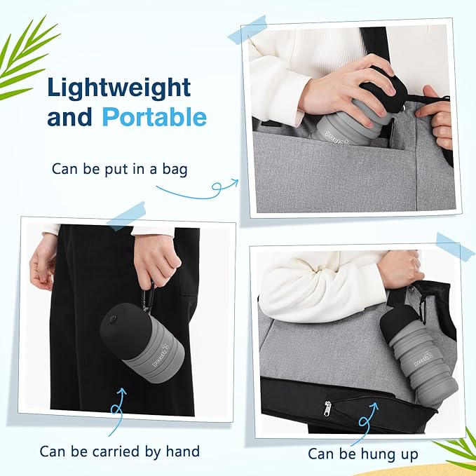 • 🐾【Lightweight and Portable】The bottle fits most backpack bottle pockets. When folded, it is only half the size. With a carabiner, it can be carried by hand or hung on a bag. It can also be placed in a bag. With the switch in the closed state, there is no need to worry about leaks.