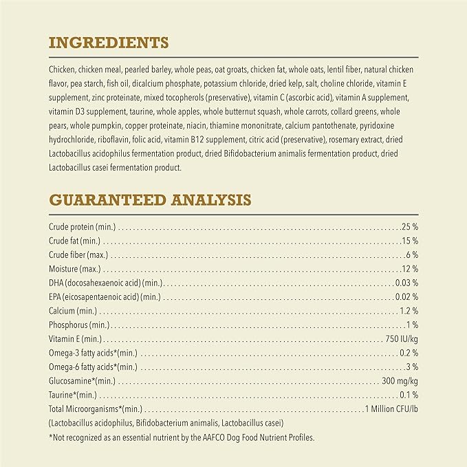 • Thoughtfully balanced recipes with protein-rich chicken, wholesome grains, vegetables and fruit. Packed with nutrients, not fillers, for less than $1.40/day*.