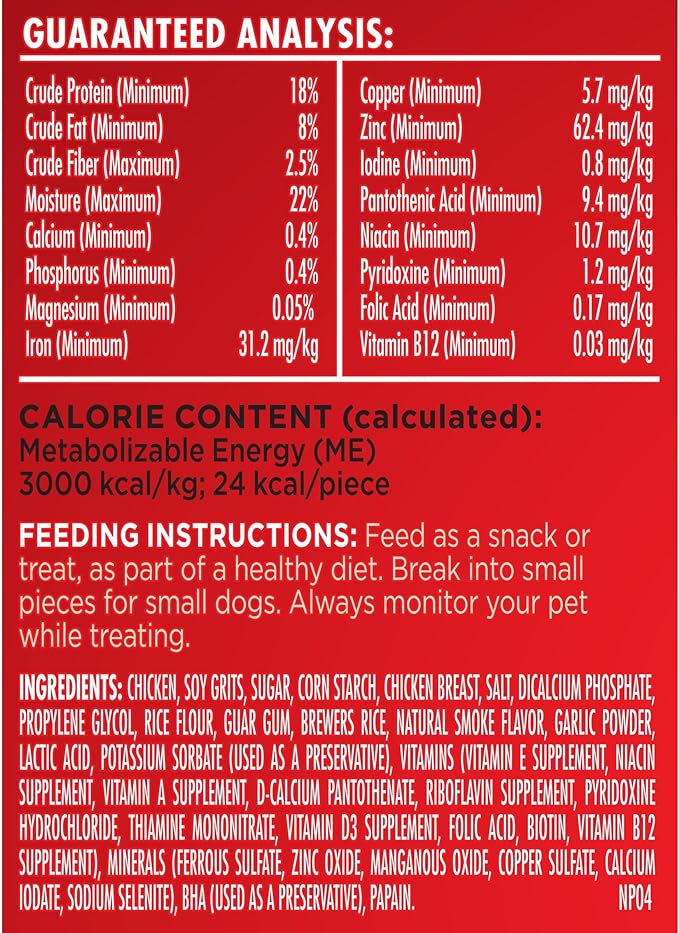 • Contains (1) 25 ounce canister of Soft & Chewy Chicken Recipe with Chicken Breast dog treats and (1) 25 ounce canister of Soft & Chewy Real Bacon dog treats