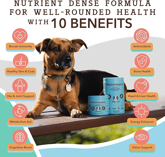 • FULL-SPECTRUM CARE: Give your dog the best with our dog multivitamin chews. These tasty treats support joint flexibility, maintain a healthy coat, and strengthen the immune system. Ideal for dogs of all ages, our chews provide essential nutrients to keep your furry friend thriving. Make daily health maintenance simple and enjoyable with our premium multivitamin chews.