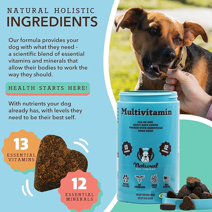 • FULL-SPECTRUM CARE: Give your dog the best with our dog multivitamin chews. These tasty treats support joint flexibility, maintain a healthy coat, and strengthen the immune system. Ideal for dogs of all ages, our chews provide essential nutrients to keep your furry friend thriving. Make daily health maintenance simple and enjoyable with our premium multivitamin chews.