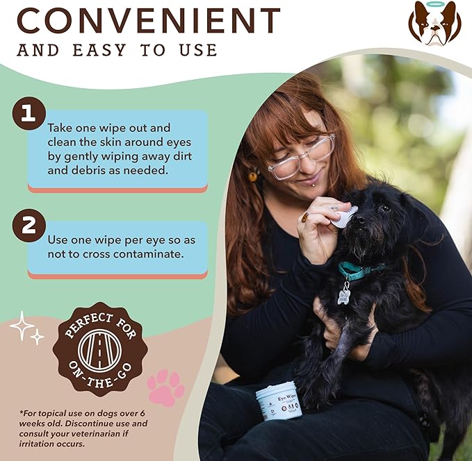 • EASY, MESS-FREE APPLICATION: Say goodbye to complicated eye dog care routines! Our dog eye wipes are designed for no-fuss application. With a clean, refreshing scent and easy-to-pull wipes, you can keep your pet's eyes pristine anytime, anywhere. Perfect for on-the-go dog care, keeping your pup ready for adventures.