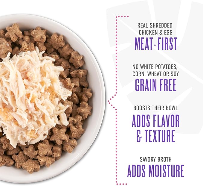 • 12% PROTEIN - Highly flavorful, extra meaty topper with real chicken and egg.