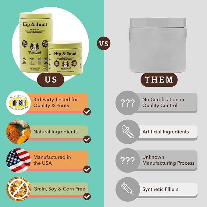 • Organic & Natural Ingredients: Our premium dog supplements have a powerful blend of Ingredients include Alaskan salmon oil, New Zealand mussel, Chondroitin Sulfate, and Glucosamine for Dogs.