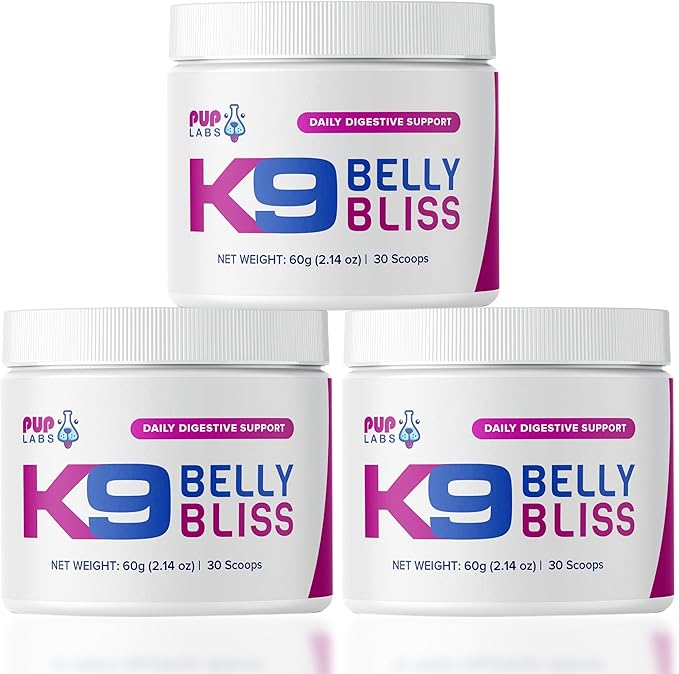 K9 Belly Bliss - Daily Prebiotic for Dogs - Vet-Approved Digestive Support, 3 Pack with 30 Scoops Each