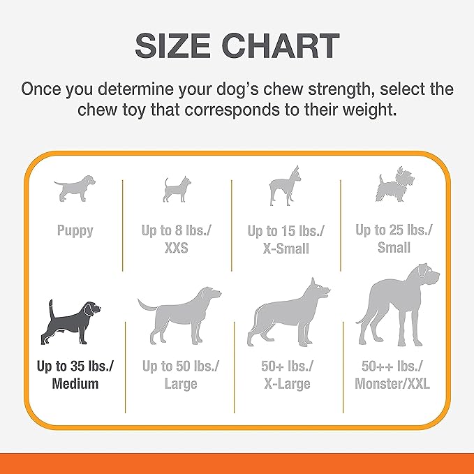 • FOR MEDIUM DOGS - Size Wolf chew toy intended for dogs up to 35 pounds