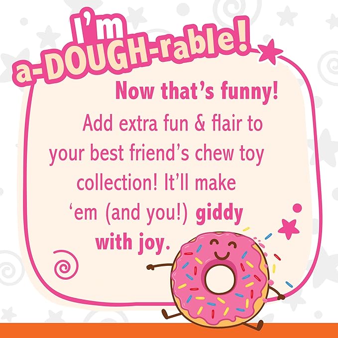 • I'M A-DOUGH-RABLE - We dog-ified a donut to make an exciting dog chew toy that will add more fun & flair to your best friend's chew toy collection