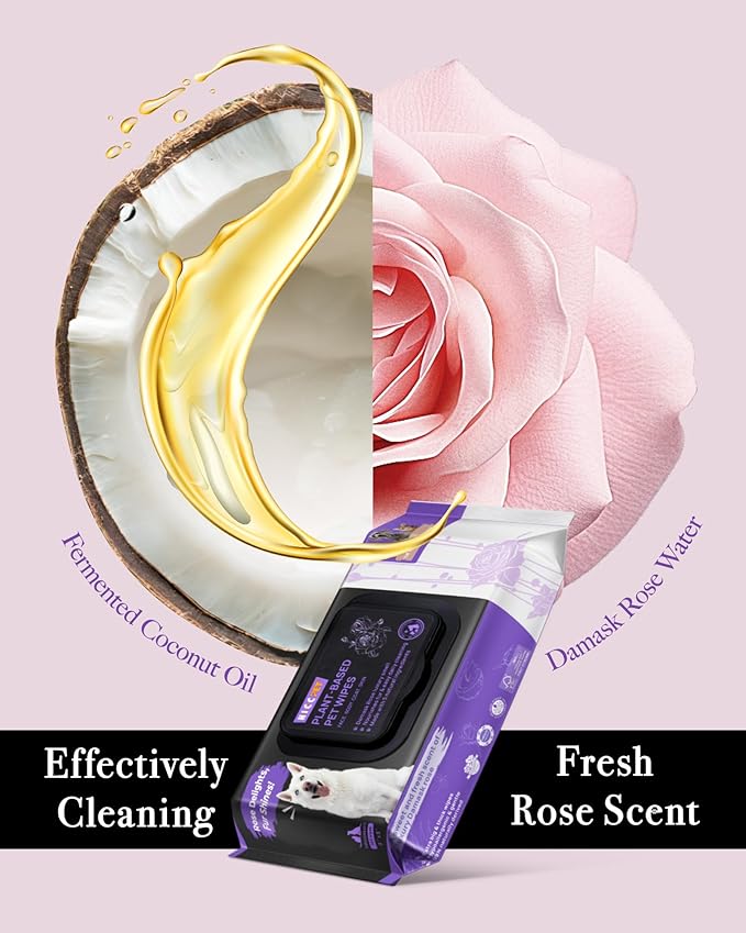 • Effectively Cleaning, Fresh Smell. HICC Pet's proprietary refined organic coconut oil fermented technology, which rich in MUFAs. Powerful effective cleaning, moisturizing, and deodorizing. Our pet wipes for dogs and cats, add the Damascus rose water and luxurious rose fragrance. Support fresh cleaning pets anytime, anywhere.