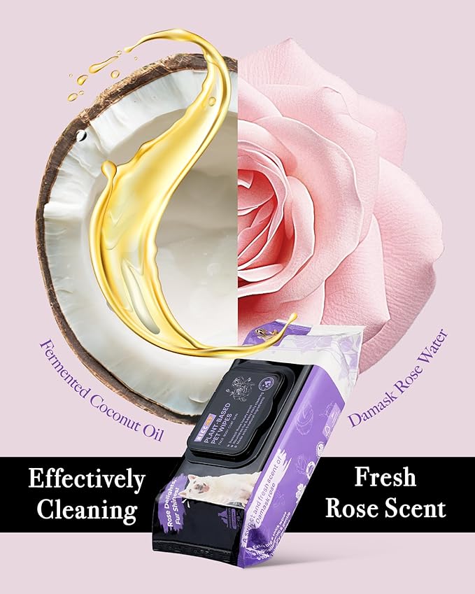 • Effectively Cleaning, Fresh Smell. HICC Pet's proprietary refined organic coconut oil fermented technology, which rich in MUFAs. Powerful effective cleaning, moisturizing, and deodorizing. Our pet wipes for dogs and cats, add the Damascus rose water and luxurious rose fragrance. Support fresh cleaning pets anytime, anywhere.