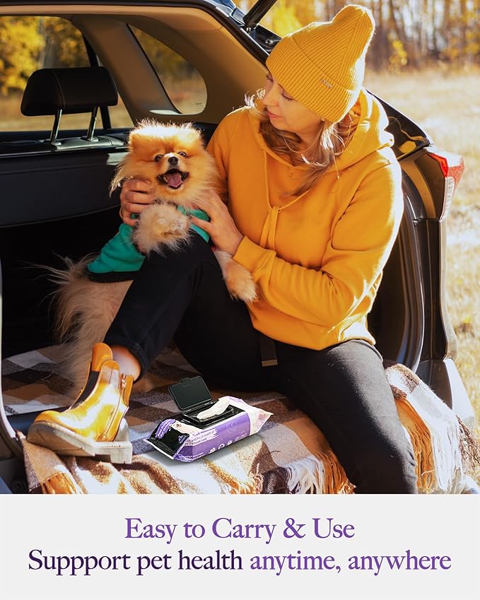 • Crafted Packing Design. No design for continuous drawing dog wipes for paws and butt. Secure lid helps keep puppy wipes fresh and moist, still lock in moisture at the end moment. Whether at home, on the go, or in outdoor adventures. Compact size easy to toss in a bag or car for quick clean-ups.
