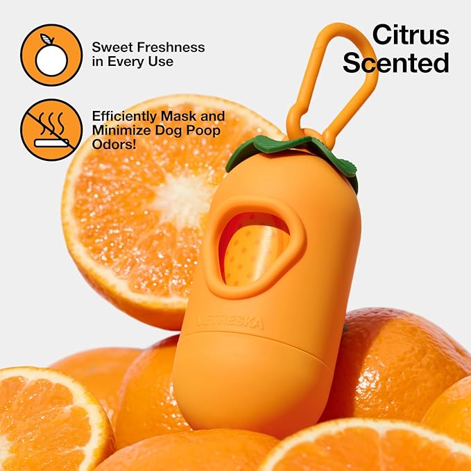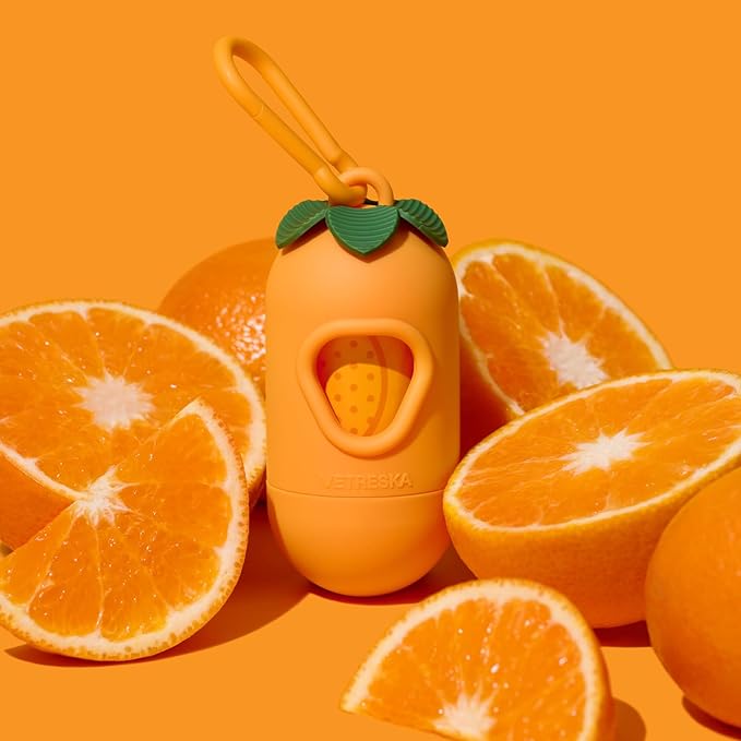 VETRESKA Dog Poop Bags Dispenser with Citrus Scented Waste Bags, Leak Proof, Extra Thick and Large Pet Poop Bags for Walking Dog, Cats Litter and Babies' Diaper 1 Count Holder and 105 Bags, Orange
