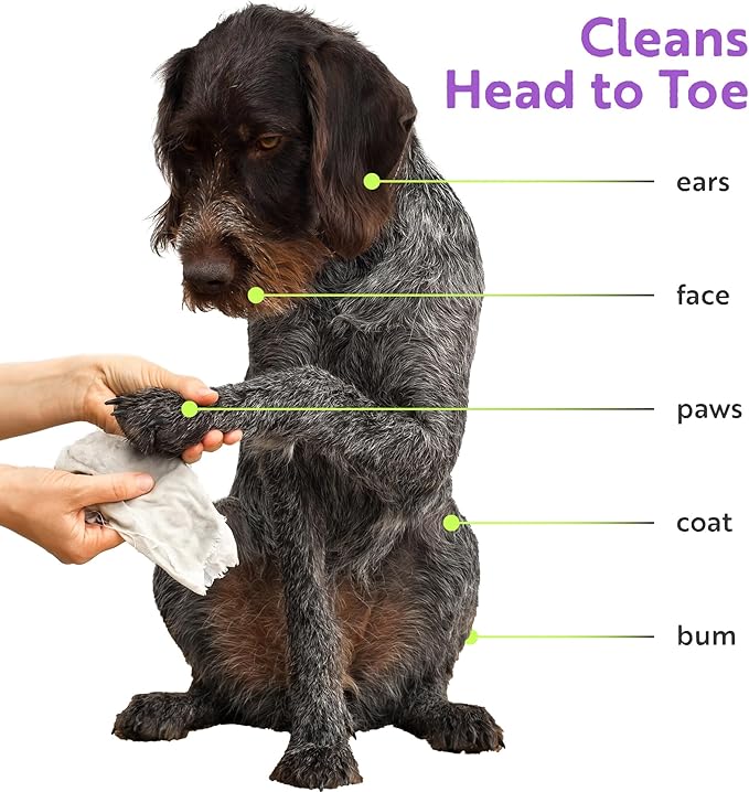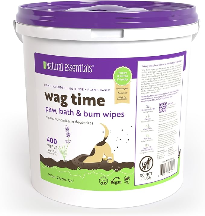 • Multipurpose Pet Wipes: Our Natural Essentials Wag Time pet wipes for dogs are designed to clean paws, body, and butt efficiently. These pet wipes are versatile and can be used for multiple grooming needs.