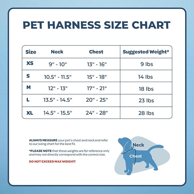 • Easy-Clean, Quick-Dry Fabric - We want you and your dog to get outside and get a little sweaty and muddy which is why our soft dog harness made with synthetic polyester dries quickly and is hand washable to keep it clean and fresh