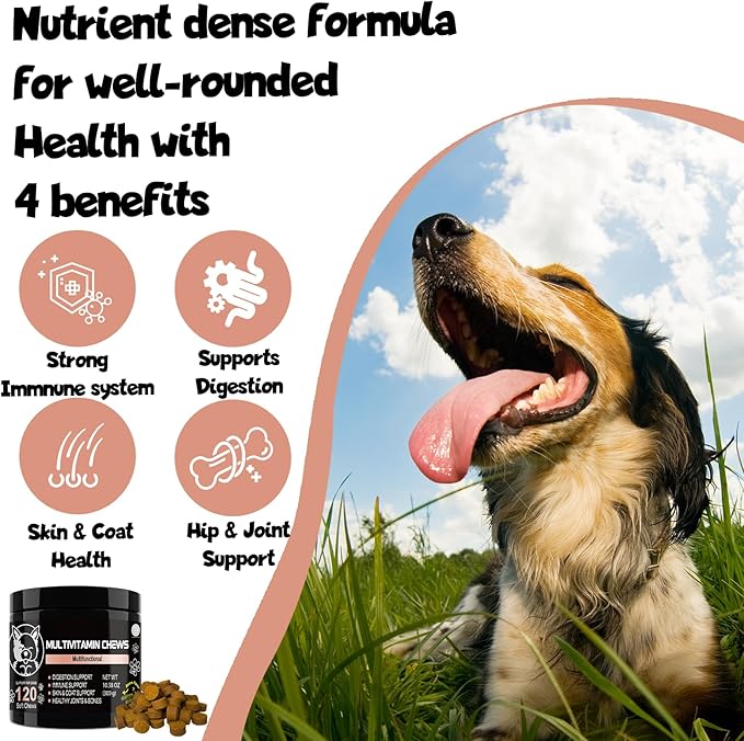 • 💙Health Support: Our dog multivitamins chewable offer comprehensive support for your pet's overall health and vitality. Formulated with a blend of essential vitamins, minerals, and nutrients, they help fill nutritional gaps in your dog's diet, promoting optimal well-being.