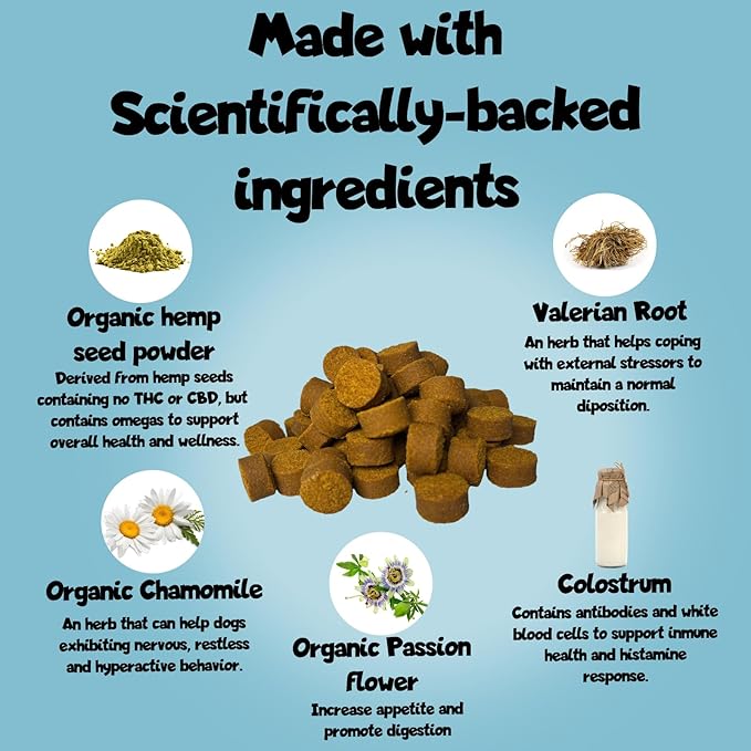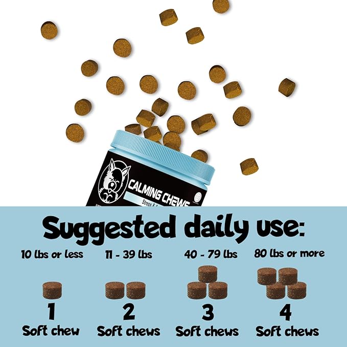 • ✅Trusted Quality: Formulated by experts in pet nutrition and backed by rigorous testing, our calming chews prioritize safety and efficacy. Trust in our commitment to providing your dog with the highest quality anxiety relief available.
