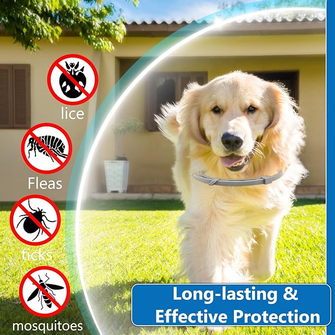 • 🐾12-month Flea and Tick Prevention: Flea collar for dogs, provides continuous 12-month flea and tick control for your furry friend. Say goodbye to the hassle of monthly flea and tick treatments and rest assured that your dog is shielded from pesky fleas and ticks all year round.