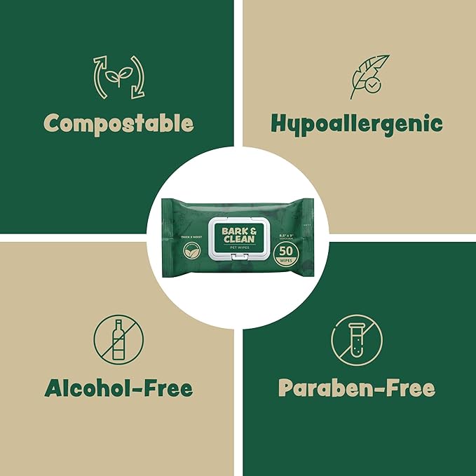 • Our puppy wipes are compostable, hypoallergenic, alcohol-free, and paraben-free.