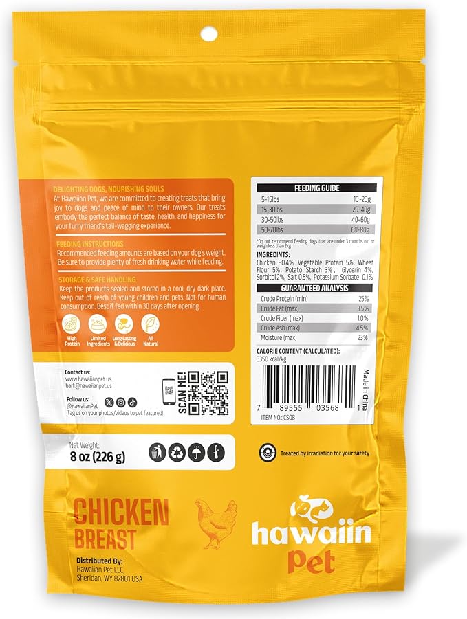 • MEAT FIRST RECIPE: Treat your pup with clean and simple treats. Hawaiian Pet chicken dog treats are perfect for snack time or rewarding your pup for being on their best behavior. No artificial flavors or preservatives, just real ingredients! The perfect all natural chicken slice for dogs.