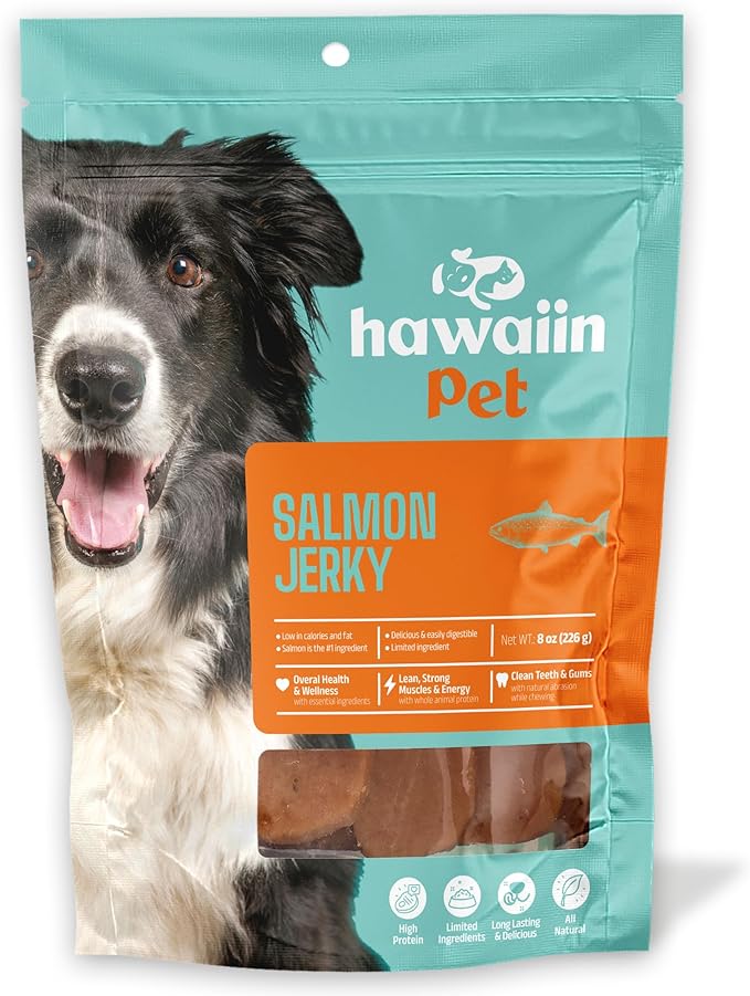 • MEAT FIRST RECIPE: Treat your pup with clean and simple treats. Hawaiian Pet salmon dog treats are perfect for snack time or rewarding your pup for being on their best behavior. No artificial flavors or preservatives, just real ingredients! The perfect all natural salmon jerky for dogs.