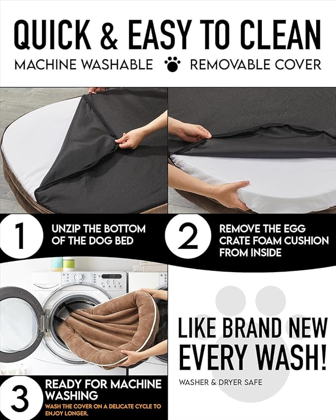 • Convenient Removable Cover: Our beds come with a removable zippered cover, making it effortless to remove and machine wash. The cover is constructed from durable and scratch-resistant fabric, ensuring longevity even with active or mischievous dogs. Wash the cover on a delicate cycle to enjoy longer!