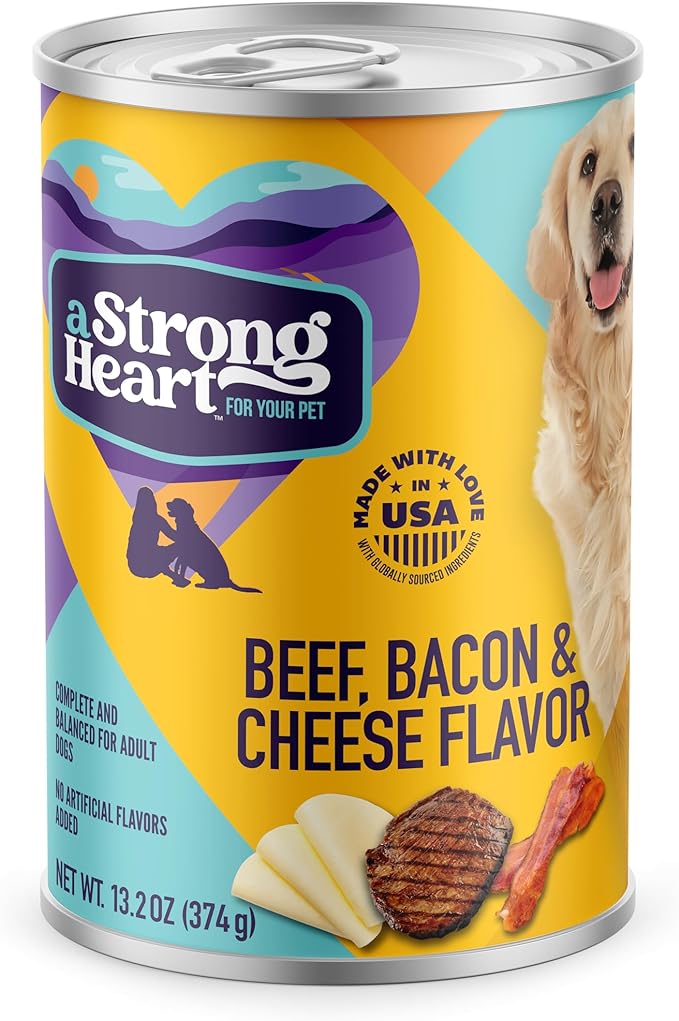 A Strong Heart Wet Dog Food, Beef, Bacon & Cheese Flavor - 13.2 oz Cans (Pack of 12), Made in The USA with Real Beef