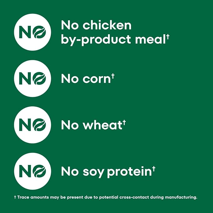 • Quality Recipe: This dry dog food is crafted with no chicken by-product meal, no artificial flavors or colors, no artificial preservatives, no corn, wheat, or soy protein, although trace amounts may be present due to potential cross-contact during manufacturing.