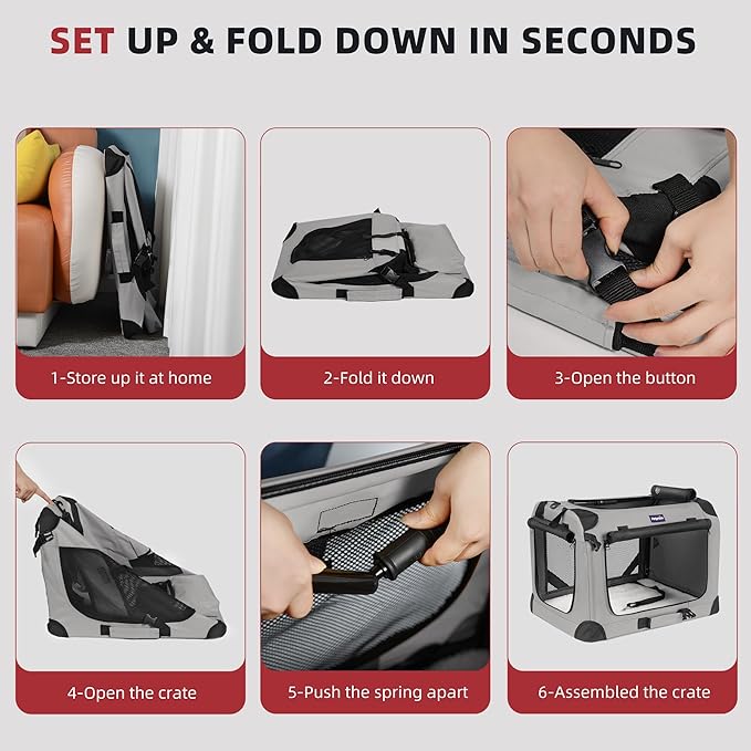 • 【Multi-Function and Great for Travel】You can use it as a crate at home or a car seat in a car. Of course, if You have an SUV, it can also be used in the trunk. Let your pet follow you on a happy and relaxing trip or carry your pet to see a doctor easliy.