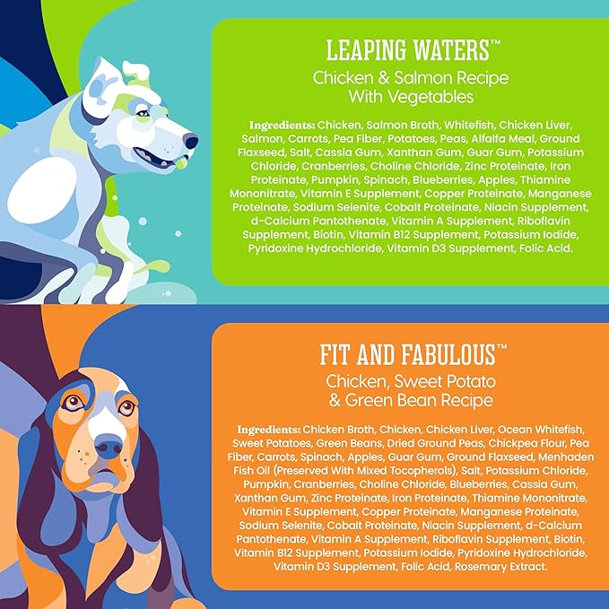 Solid Gold Wet Dog Food Variety Pack for Picky Eaters - Fit & Fabulous Chicken + Leaping Waters Chicken & Salmon Grain Free Canned Dog Food - Made with Real Protein for Sensitive Stomachs - 6 Pack