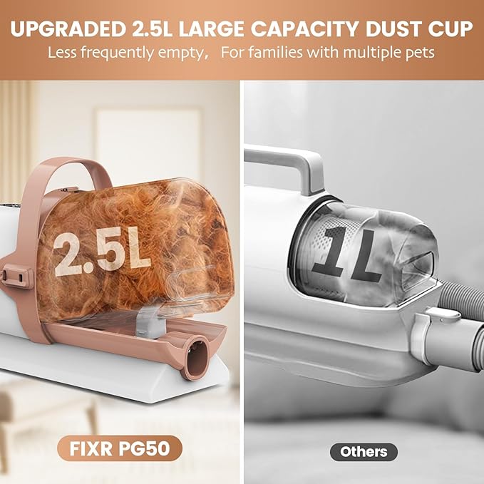• Enhanced Convenience: Our pet grooming vacuum features a 1.4m detachable extended hose and a 2.5L trash can. The extended hose provides flexibility in grooming, keeping pets away from motor noise to reduce anxiety. With the large trash can, you can groom without frequent interruptions for emptying, making the process smoother and more efficient.