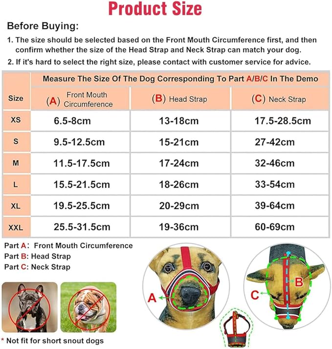 • 【Multiple Sizes and Satisfying Service】: The muzzle is available in multiple sizes for small mediun large dogs, and customers are encouraged to read the size chart and instructions carefully before purchasing. If customers have any questions or concerns, they can contact the seller by email for the most satisfactory answer.