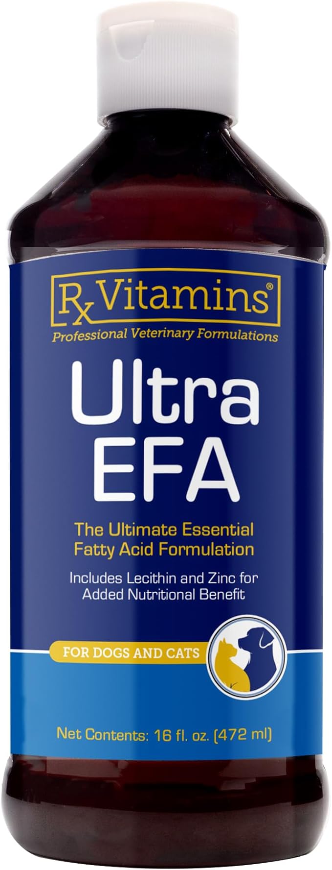 Rx Vitamins Ultra EFA Omega 3 Fish Oil for Dogs & Cats - Promotes Heart, Brain, and Joint Health with Vitamin E, Biotin, and Zinc - Liquid Fish Oil for Itch Relief & Dog Shedding - 16 oz