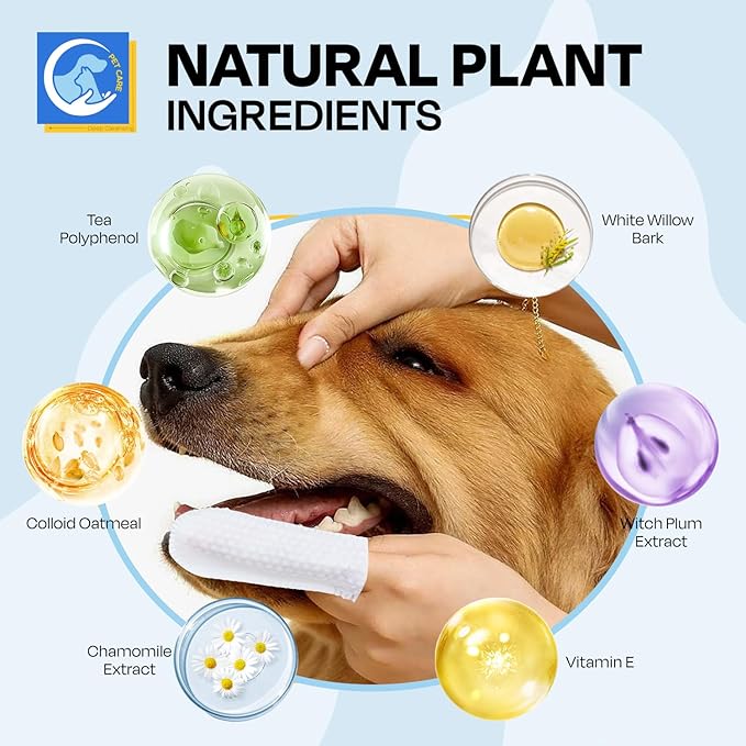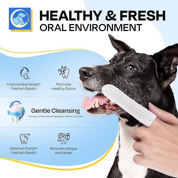 • CLEAN TEETH & GUM: Use pet dental cleaning finger wipes to gently wipe stains on dogs' teeth and gums to prevent plaque and tartar buildup. Regular cleaning can ensure your dog's oral care and gum health.