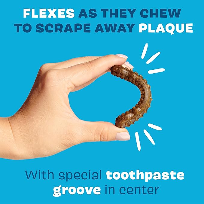 • No-Mess Cleaning for Stubborn Dogs: For those stubborn dogs averse to a traditional toothbrush, our dental chews feature curved grooves. This design ensures that the toothpaste gel always ends up where it needs to be—in your dog's mouth. Simply squeeze the paste into the center canal, and let your dog take care of the rest
