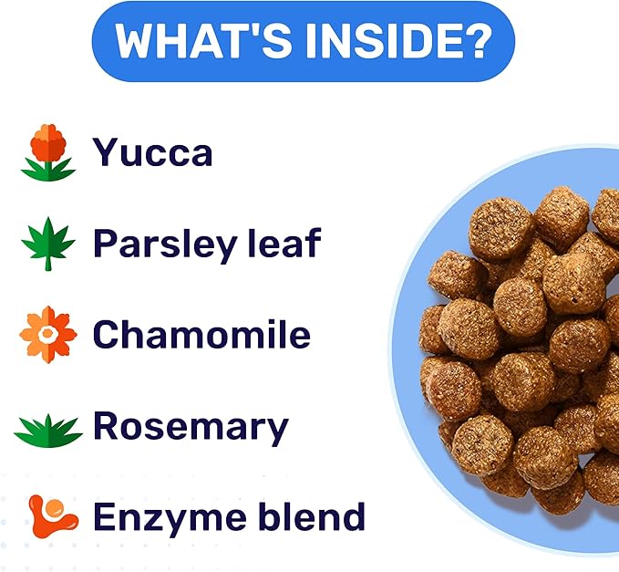 • Boost Healthy Digestion and Immunity - this stop eating poop remedy contains digestive enzymes, chamomile and fiber to ease dog’s upset stomach, gas, bloating, constipation, diarrhea, indigestion, and stomach discomfort.