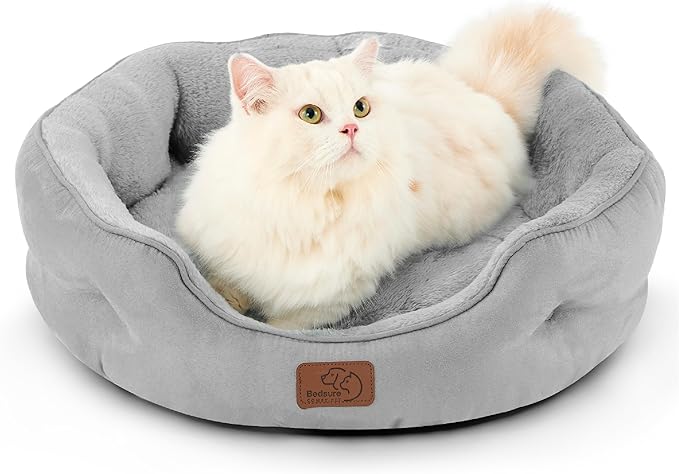 Bedsure Dog Beds for Small Dogs - Round Cat Beds for Indoor Cats, Washable Pet Bed for Puppy and Kitten with Slip-Resistant Bottom, 20 Inches, Pale Grey
