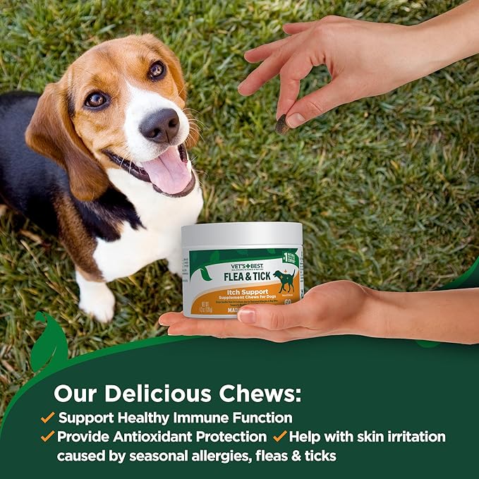 Vet’s Best Flea & Tick Support Soft Chews – Itch Support – Supplement Chews for Dogs – Soothes Skin Irritations Due to Seasonal Allergies, Fleas & Ticks – 60 Chews