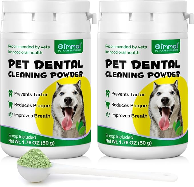 • 🌱🐕 50g x 2 Dogs Teeth Cleaning Powder - The dental cleaning powder may help promotes healthy teeth and gums, reduce plaque and tartar build-up, freshen breath, aids digestive health and support overall oral health.