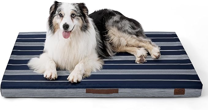 Bedsure Extra Large Patterned Dog Bed for Large Dogs, Outdoor Waterproof Orthopedic Egg Foam Dog Bed Comfort Pet Mats for Crate with Removable Washable Cover(41"x29", Navy Blue)