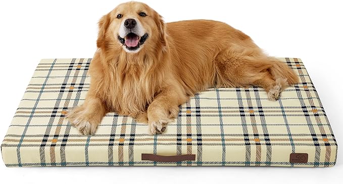 Bedsure Extra Large Patterned Dog Bed for Large Dogs, Outdoor Waterproof Orthopedic Egg Foam Dog Bed Comfort Pet Mats for Crate with Removable Washable Cover(44"x32", Cream)