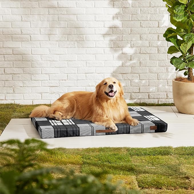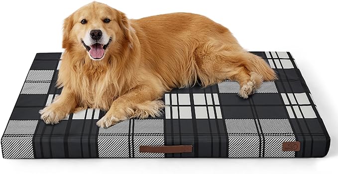 Bedsure Extra Large Patterned Dog Bed for Large Dogs, Outdoor Waterproof Orthopedic Egg Foam Dog Bed Comfort Pet Mats for Crate with Removable Washable Cover(44"x32", Black)