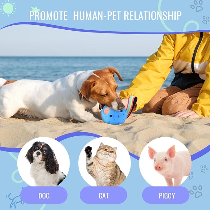 • [Unique appearance design]——The round holes of different sizes on the outside of the sphere are reminiscent of meteorites. These holes are not only convenient for people to grasp, but also 2 slightly larger holes and 3 smaller holes can leak food and allow dogs to get it.
