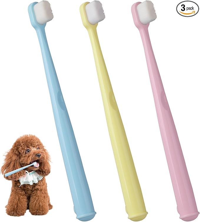 3 Pack Pet Cat Dog Toothbrush, Extra Soft Smal Dog Dental Care Toothbrush, Puppy Dental Cleaning Teeth Brushes for Small Dog Cat, Pet Deep Clean Dense Brush