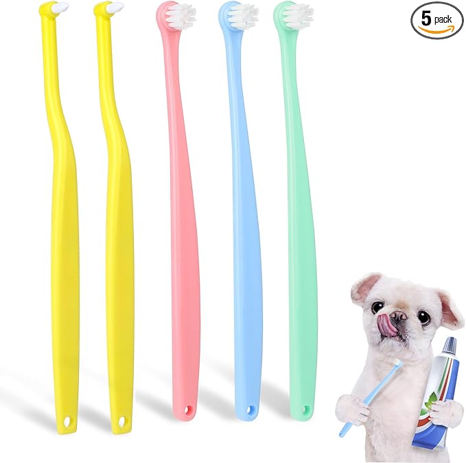 5pcs Dog Cat Toothbrush for Pet Dental Care, Micro Head Pets Toothbrush with Soft Bristles for Dog Oral Hygiene Deep Clean, Multi-Angle Round Pointed Cat Toothbrush