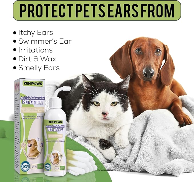 • CLEANS AND DEODORIZES: Zenpaws cleanser can remove wax, dirt, and secretions. Keeping ears clean and hygienic. The cleaner uses a solution to rinse ears removing buildup that causes bad odor and potential ear infections in dogs and cats.