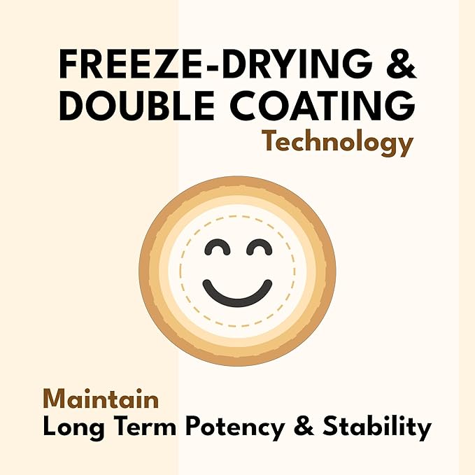 • High Stability and Potency: Utilizing cutting-edge freeze-drying and double-coating technologies, our probiotics maintain their potency and stability over time, guaranteeing that your pet receives the full spectrum of benefits with each serving.