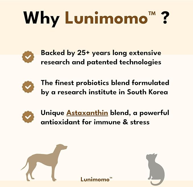 • Pure and Natural Formulation with GRAS(Generally Recognized As Safe) Ingredients: Developed by expert biologists in South Korea, Lunimomo's Pre+Probiotics Pets is made with the highest quality natural ingredients. Free from artificial flavors and harmful additives, our powder formula offers superior benefits over chewable types, ensuring a safe and effective product for your pet's health.